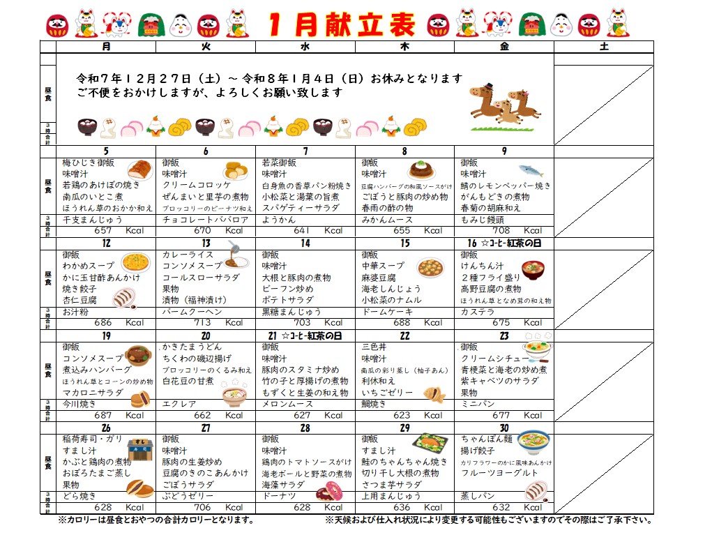 1月の献立表